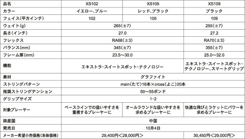 SRIスポーツ(株)は、バボラVS社の新製品テニスラケット「XSシリーズ」3機種を、10月4日から全国一斉に新発売します。このラケットは、「XSウーファー」を搭載し、これまでにない快適なボールコンタクトと広いスイートエリアを実現しました。メーカー希望小売価格(消費税込み)は、「XS102(2色)」、「XS105(2色)」が29,400円<本体価格28,000円>で、「XS109」は30,450円<本体価格29,000円>です。「XSシリーズ」は、老若男女を問わず、一人でも多くのプレーヤーに、最も適したラケットパフォーマンスを提供する、新たな革新技術を駆使したラケットです。これまでにない快適なボールコンタクトと広いスイートエリアを実現する「XSウーファー」を搭載し、操作性を落とさない範囲で、大きすぎず、小さすぎない3種類のフェイスサイズで展開します。XS102とXS105はフレームカラーも選べ、多様なニーズに対応します。 ![]() ■「XSシリーズ」の特長
