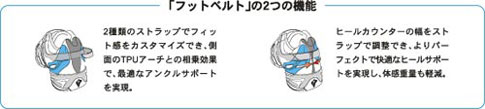 ■「PROPULSE 2 シリーズ」の特長 「フットベルト」を採用し、よりパーフェクトなフットサポートを実現 締めつけ具合を調整できる2つのストラップにより、プレーヤーの好みに合わせて、フィット感自在なカスタマイズを可能にするとともに、3方向から足を包み込むようにサポート。競技に求められる激しいフットワークに対応します。 ![]() ![]() 従来の「エグザクト※1」プレートに、軽くて弾力性や復元性に優れたハイテク素材「ぺバックス」※2を採用し、形状を大幅に変更しました。これにより、あらゆるステップにおける推進力が均等に高まり、フットワークをより機敏で正確なものにします。