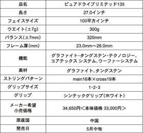 SRIスポーツ(株)は、バボラVS社の創業135周年記念モデル、「ピュアドライブリミテッド135」と「12本入りラケットホルダー」を、(株)ダンロップスポーツを通じて、5月中旬から順次発売します。希望小売価格(消費税込み)は、「ピュアドライブリミテッド135」が34,650円<本体価格 33,000円>で、「12本入りラケットホルダー」が12,600円<本体価格 12,000円>です。 ![]() ![]() 現在のテニスという競技が始まったのが1874年。その翌年の1875年から「バボラVS社」は、ナチュラルストリングの生産を開始しました。以来バボラはテニスの発展とともに歩み、ストリングブランドとして、数多くの歴代チャンピオンたちの勝利に貢献してきました。1994年にはトータルテニスブランドをめざし、ラケットの発売を開始しました。これまでに、カルロス・モヤ、アンディ・ロディック、ラファエル・ナダル、キム・クリステルスがバボラのラケットとストリングを使用し、グランドスラム大会で優勝を果たしました。そのバボラテニスラケットの代名詞である「ピュアドライブ」は、契約選手の多くが使用し、1999年に日本に初登場しました。初代モデルには、世界初の革新技術「ウーファー」を搭載、2006年に発売した2代目モデルには、不快な振動だけを効果的に取り除く「コアテックス システム」を搭載。また2009年に発売した3代目には「グラファイト・タングステン・テクノロジー」を採用し、強靭なフレーム剛性を実現し新たな進化をとげました。「ピュアドライブ」は、ATPとWTAを席捲する圧倒的な使用率で数多くの勝利に貢献するとともに、長期にわたるヒットモデルとして世界各国のテニスシーンで活躍し続けています。 今回、「ピュアドライブ」の135周年記念モデルとして「ピュアドライブリミテッド135」を、グランドスラム大会シーズンに合わせ、「12本入りラケットホルダー」とともに数量限定発売します。カラーはラケット、ラケットホルダーともに全仏オープンが開催されるローランギャロスのアンツーカーコートをイメージした、赤茶色です。 ■ピュアドライブリミテッド135の仕様