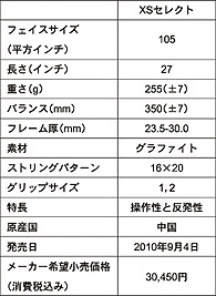 SRIスポーツ(株)は、バボラVS社のテニスラケットXSシリーズから、軽量化した「XSセレクト」を(株)ダンロップスポーツを通じて、9月4日から全国一斉発売します。メーカー希望小売価格は30,450円<本体価格29,000円>です。 「XSセレクト」は、2008年秋に発売した「XSシリーズ」の追加モデルで、従来モデルより軽量化することで扱いやすくした、初中級プレーヤー向けテニスラケットです。 ■「Y105RSG」「Y109RSG」の仕様