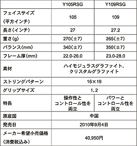 SRIスポーツ(株)は、バボラVS社のテニスラケットYシリーズから、アクティブプレーヤー向けの「Y105RSG」「Y109RSG」を、(株)ダンロップスポーツを通じて9月4日から全国一斉発売します。メーカー希望小売価格は40,950円<本体価格39,000円>です。 ※RSG(Removable Smart Grip)とは:標準グリップに変更可能なスマートグリップ。 「Y105RSG」と「Y109RSG」は、昨年秋に発売した「Yシリーズ」の追加モデルで、アクティブプレーヤー向けに、従来のフェイスサイズより一回り小さくすることで、操作性とコントロール性を向上させたテニスラケットです。 ■「Y105RSG」「Y109RSG」の仕様