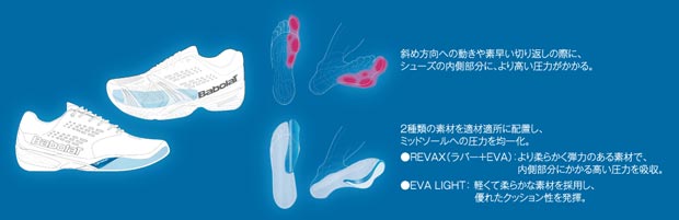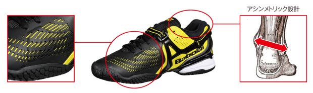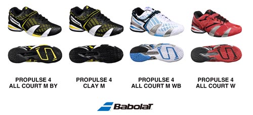 ダンロップスポーツ(株)は、バボラVS社のテニスシューズ「PROPULSE4」シリーズを、(株)ダンロップスポーツマーケティングを通じて3月14日から新発売します。 このシリーズは、世界のトッププレーヤーが使用するバボラVS社のフラッグシップモデルです。 メーカー希望小売価格(消費税込み)は、「PROPULSE4 All Court M(オールコート、男性用、カラー:ブラック×イエロー、ホワイト×ブルー)」、「PROPULSE4 Clay M(クレーコート、男性用、カラー:ブラック×イエロー)」、が14,595円<本体価格 13,900円>、「PROPULSE4 All Court W(オールコート、女性用、カラー:ピンク)」が13,125円<本体価格 12,500円>です。 「PROPULSE」シリーズは、初代モデルから使用しているアンディ・ロディック選手(2012年末現役引退)の信頼も厚く、世界の競技シーンでも性能が証明され、国内主要トーナメントにおいても常に高い使用率を誇っています。「PROPULSE4」では、新しいテクノロジーの搭載により耐久性、フィット感、安定性を大幅に向上、また女性用モデルには、女性のための専用テクノロジーを搭載、パーフェクトなフットサポートと競技者が求める適度なフィット感で高いパフォーマンスを発揮します。 ■「PROPULSE4」シリーズの新しいテクノロジー (1)横方向への推進力をより高めた「サイド2サイド」 ソール内部で、バネのように機能するペバックス®プレートを3D化することにより、反発性が前モデルに比べ13%向上しました。特に、横方向への推進力を高めました。 ミシュラン社との共同開発により、アウトソールを刷新。他社同等品よりも40%以上※1も高い耐摩耗性を確保しながら、オールコートのパフォーマンスを強化しました。 ※1:バボラVS社テストデータより