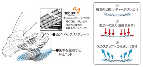 (1)衝撃を吸収し、推進力に変換する「コンプレッサー・システム」 「プロパルス」で熟成されたハイパフォーマンスな衝撃吸収システムを採用しました。着地時の衝撃からかかと部を確実に保護し、吸収したエネルギーをダイナミックに次のステップへの推進力に変換します。 「プロパルス」と同様のアッパーパターンを採用しました。アッパーの足首部分をかかとに適合するように非対象化しサポート性とフィット感を向上しました。 ■「V-PRO2」シリーズの概要 以上