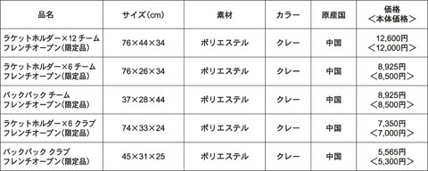 ※全て数量限定品 ■バボラ「フレンチオ−プン・ライン」の仕様 【ラケット】 【バッグ】 以上