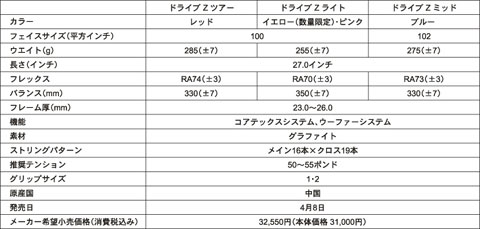 ダンロップスポーツ(株)は、扱いやすいステップアップラケットとして高い評価を獲得してきたバボラVS社のテニスラケット「ドライブ Z」シリーズ3機種を、(株)ダンロップスポーツマーケティングを通じて、4月8日から全国一斉に新発売します。メーカー希望小売価格(消費税込み)は、3機種いずれも32,550円<本体価格 31,000円>です。 ■「ドライブ Z」シリーズの特長 「ドライブ Z」シリーズは、2011年4月に発売したモデルの後継機種として、「ピュアドライブ」や「アエロプロドライブ」に搭載されている「コアテックス・アクティブテクノロジー」を採用し、快適な打球感を実現しました。トータルバランスに優れた「ドライブ Z ツアー」、操作性を重視したシリーズ最軽量の「ドライブ Z ライト」、フェイス面を大きくした高反発ラケットの「ドライブ Z ミッド」の3機種があり、初級者から中級者までステップアップをするために適したラケット・パフォーマンスを提供します。 ■「ドライブ Z」シリーズの仕様 以上